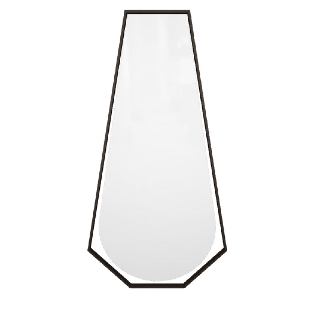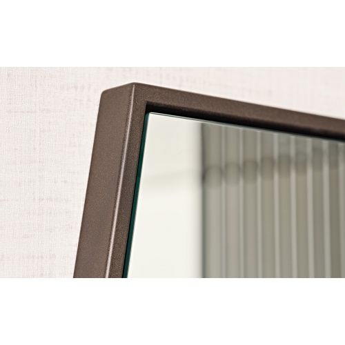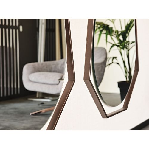 Espejo de pared en cristal reflejado con marco con forma geométrica fabricado en acero barnizado en bronce gofrado.