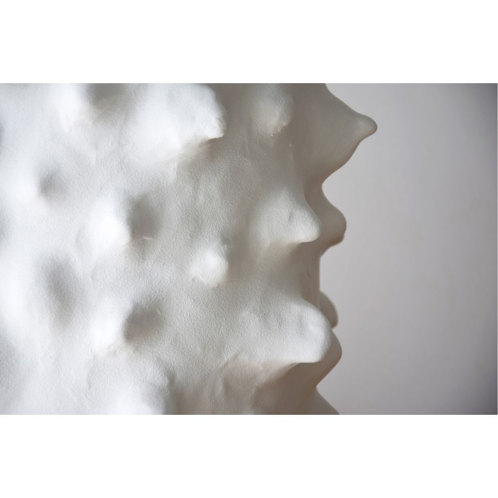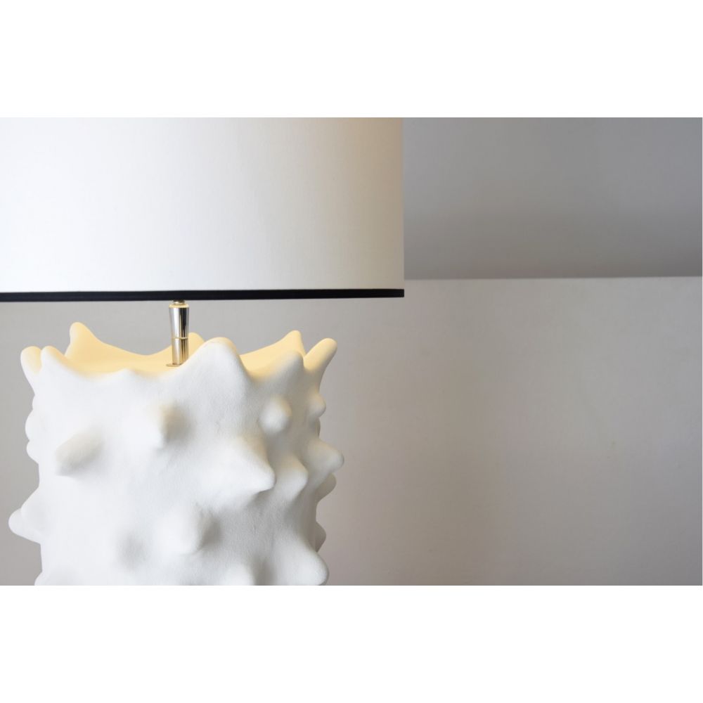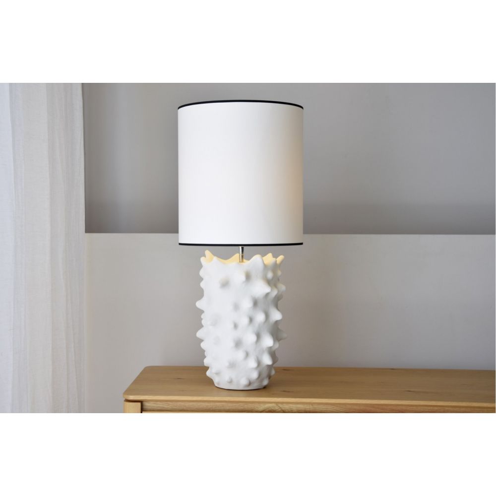 Lámpara de sobremesa realizada en cerámica con relieve en picos en toda la envolvente.