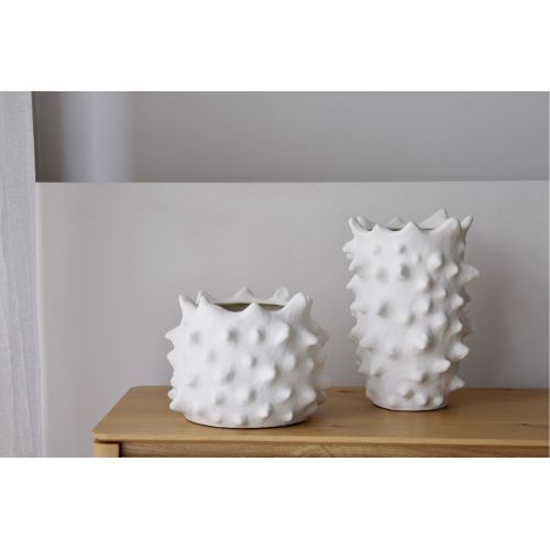 Jarrón de cerámica con acabado exterior de relieve en picos