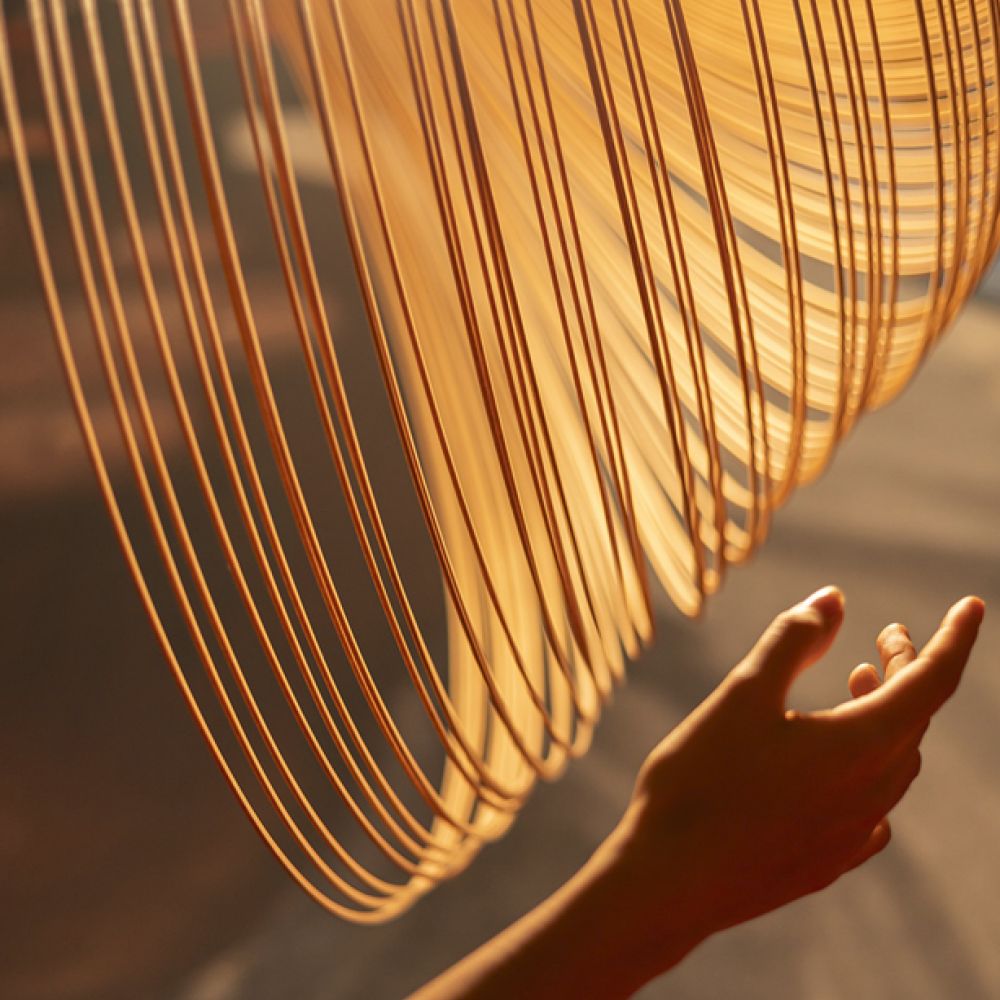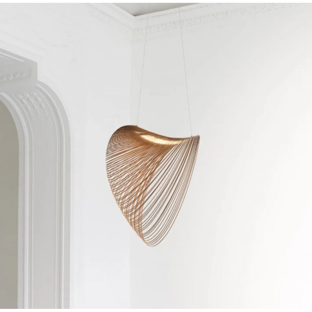 El la lámpara colgante Illan combina ligereza y elegancia en un diseño flotante que resalta la belleza natural de la madera. Está cortado de madera contrachapada ultrafina y flexible con cortes láser precisos que proporcionan un fino equilibrio entre estructura y movimiento. Cuando la lámpara cuelga libremente, su forma orgánica se despliega y crea una luz suave y atmosférica.
