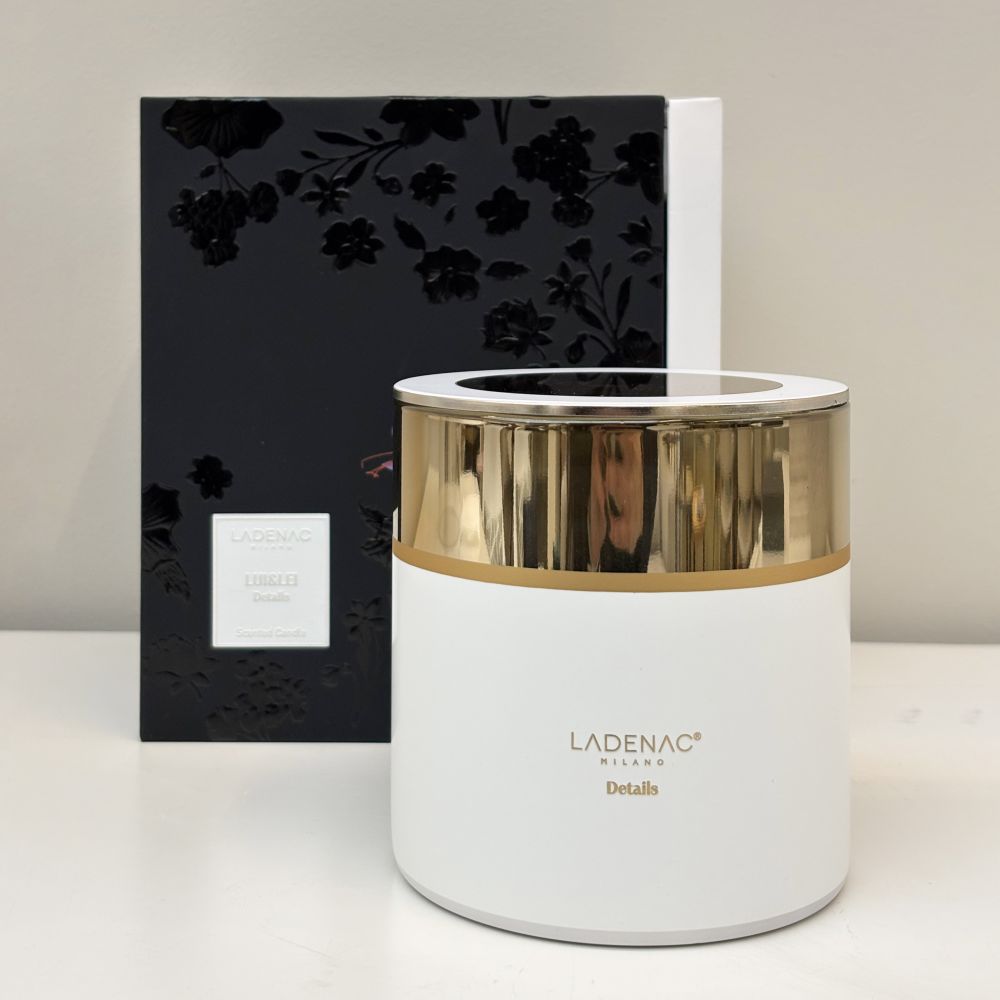 Presentada en un sofisticado vaso blanco con toques dorados, tapa a juego y una exclusiva caja tipo cofre, ideal para regalar o dar un toque distintivo al hogar.